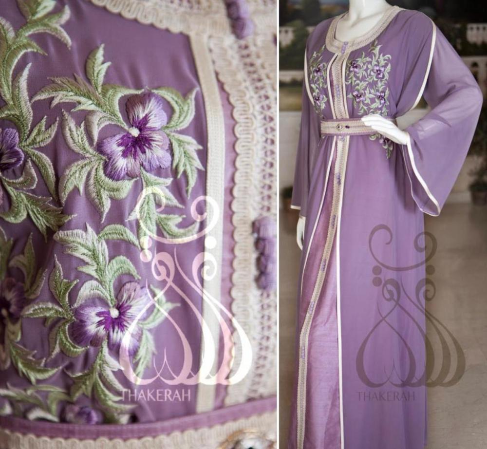 شيفون جورجيت موف تطريز على الصدر والقطعة الداخلية كريب لون موف ..